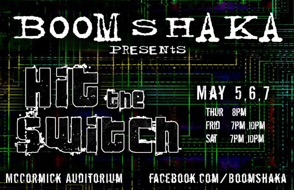 BOOMSHAKA: HIT THE SWITCH runs until May 7 in McCormick Auditorium at Northwestern University (1999 Campus Drive, Evanston, IL 60201). More information is available at https://www.facebook.com/boomshaka.